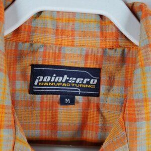 Point Zero Button Up Short Sleeve Shirt Orange Tan Plaid 1 Pocket Youth Sz M