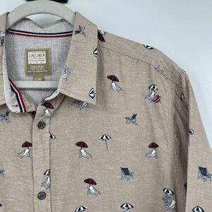Kick back in casual style with this men's large Hawaiian short-sleeve shirt from Point Zero. Made from linen, the shirt features a beach chair and umbrella design, perfect for vacations.