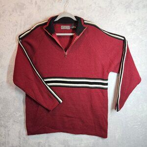 Point Zero Mens M Red 1/4 Zip Sweater Striped Detail tight knit Office hipster