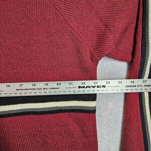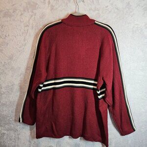 Embrace timeless style with this vintage red sweater, featuring a classic half-zip design and eye-catching black and white stripes. Ideal for a professional wardrobe, its versatile look pairs well with both casual and formal attire. Constructed for comfort, it provides warmth and sophistication in equal measure.