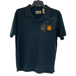 Point Zero Polo Shirt Men's Size Large Vintage Wash Skull Head Logo Button Top