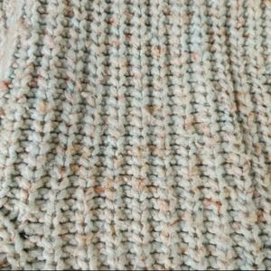 Point Sur by J. Crew. Chunky ribbed crewneck sweater. Eyelet details. Cozy sweater in a marled acrylic/wool/viscose/poly blend. Relaxed fit, hits at hip. In GUC for mild wear, but there's pilling.