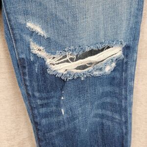 Stylish blue distressed jeans perfect for a casual look. Comfortable fit with a modern design.