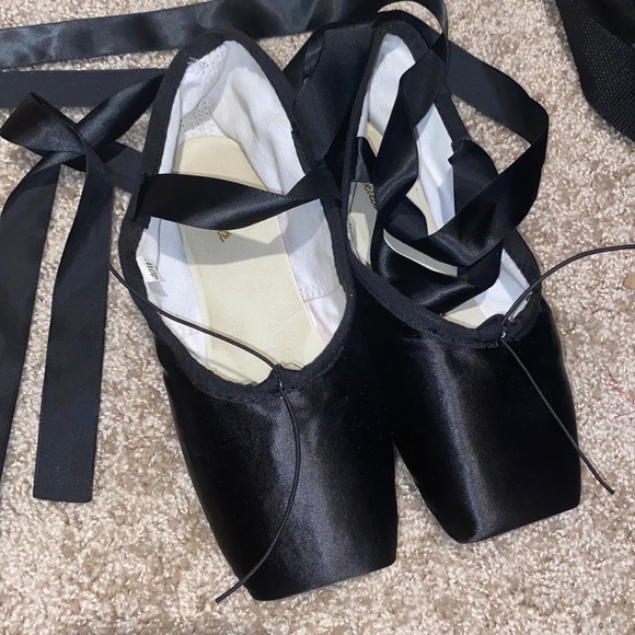 Bought for a Halloween costume. Authentic ballet Pointe shoes with toe protectors