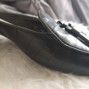 Black pointed mules with tassel detail. Worn a few times. See pictures for normal wear. Like new!