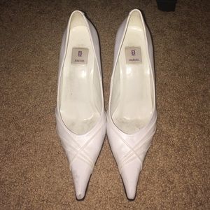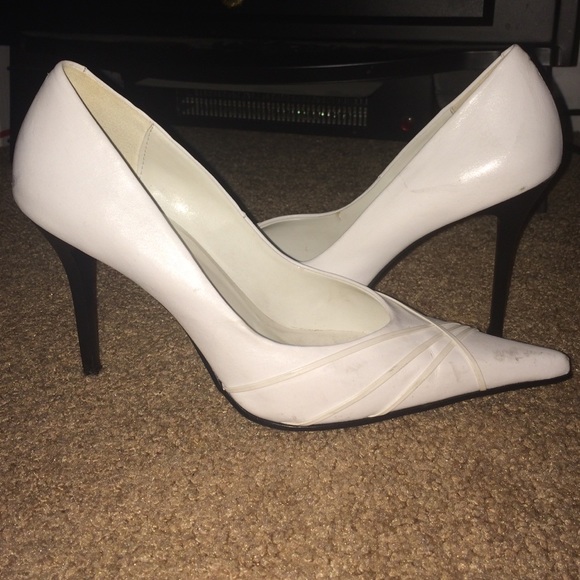 White closed toe heels. Some signs of wear, but still in good condition.