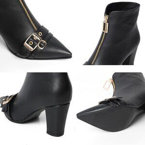 Comfortable Fit with Zip Closure: Experience a secure and comfortable fit with our black ankle boots featuring a smooth zipper closure. The perfect fit around your ankle ensures all-day wearability, whether you're dressing up for a special occasion or keeping it casual.