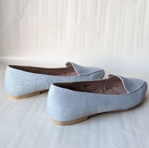 Pointed Toe Shimmer Loafer Flats, Seamed Upper, Silver -sz 8