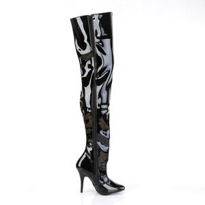 Heel 5" Stiletto Thigh High High Heel Boots Shoes. Pointed Toe and Full Inner Side Zipper. Faux Patent Leather.
