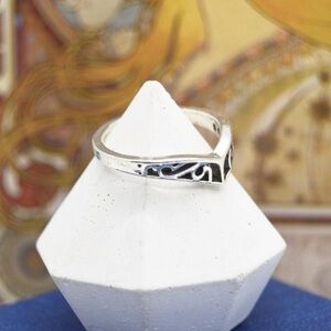 Elegant stacking piece with intricate etching for eclectic charm! The silver band complements the boho vibe, making it a versatile addition to your collection
