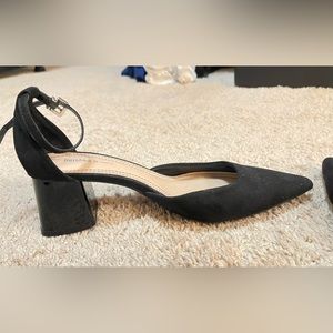 Pointed suede block heels