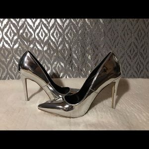 Pointed toe paired with a closed stiletto heel and patent finished upper. Heel: 4.5"