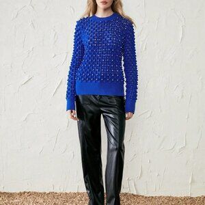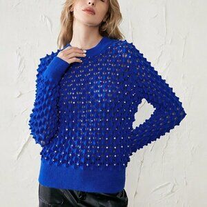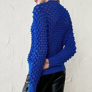 Pointelle Knit Sweater Blue