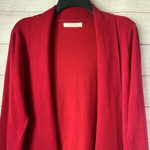 Pointelle Long Red Cardigan Sweater Open Front Folded Neckline Size Small