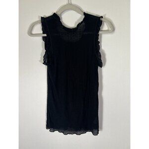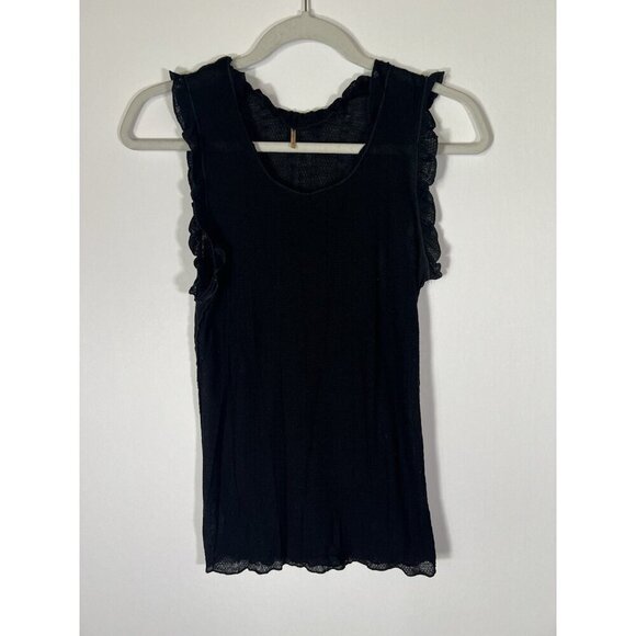 Pointelle ruffle black sleeveless lightweight Coquette tank sz L 90s classic VTG