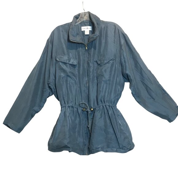 Points West Blue Silk Anorak Jacket Summer Weight Womens L NWOT