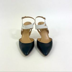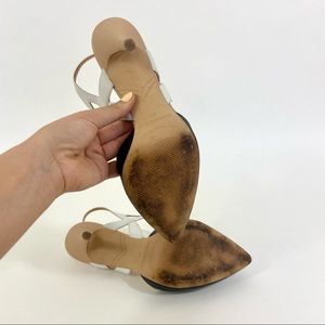 Worn once for a wedding - still in amazing condition (except for the bottoms). Hardly any creasing on the leather toe, very minor scuffing on the heel and white leather ankle straps.