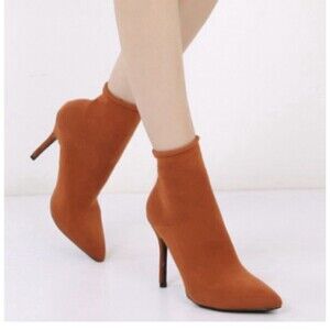 Pointy Sock Booties Women 8 High Heel Ankle Boot Pull On Mackin J
