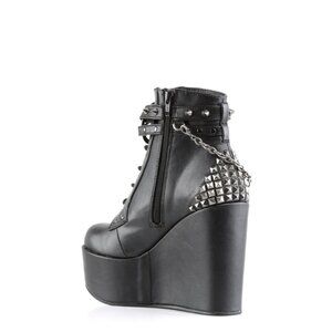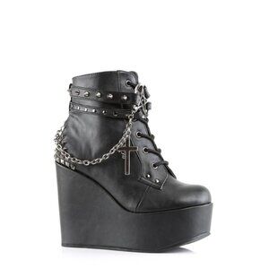 Poison 101 Pentagram Cross Chain 5" Wedge Heel Studded Goth Ankle Boots