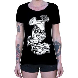 Poison Paradise Pina Colada Skull Tattoo Art Round Neck Black Tee NEW S-M-L-XL