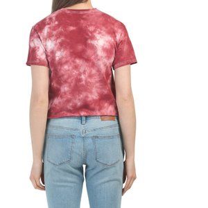The Western-inflected track "Ride the Wind" is one of the best off Poison's 1990 album Flesh & Blood, which went triple platinum in 1991. This track inspired this tee's front design, which features a top hat-wearing skull in front of motorcycle parts and ringed with fire. Dark Pink Tie Dye pattern on the front and back of the 100% cotton tee. Crew neck, dropped shoulders, short sleeves, and raw-cut hem.