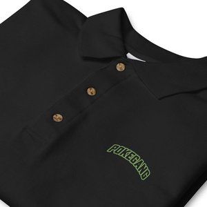 PokeGang Men's Black Short Sleeve Button Up Green Logo Sport Polo Shirt Size S