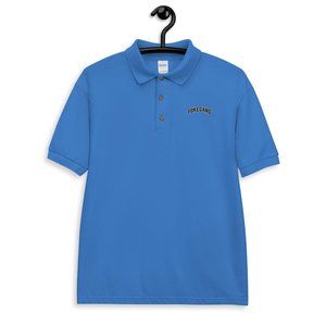 PokeGang Men's Blue Cotton Short Sleeve Button Up Embroidery Polo Shirt Size S