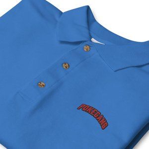 PokeGang Men's Blue Short Sleeve Button Up Embroidery Sport Polo Shirt Size S