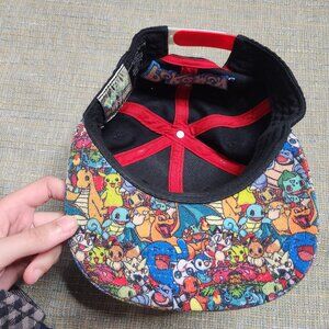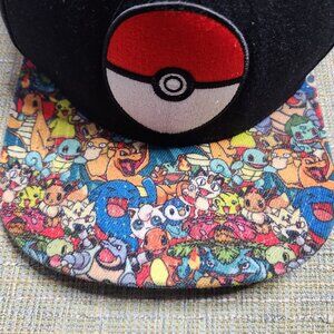 Pokeball Pokemon Characters Hat Snapback Cap Universal Fit Adjustable Black Gently pre owned.