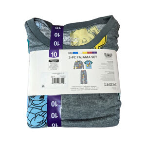 Pokemon 3 piece Pajama Set Large 10 Blue Gray Kids 2 Tops 1 Pants Sleep Pj Night