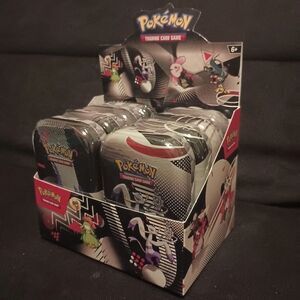 Pokemon Black Bolt White Flare Mini Tins 8 Sealed Tins w/Display Case 16 Booster