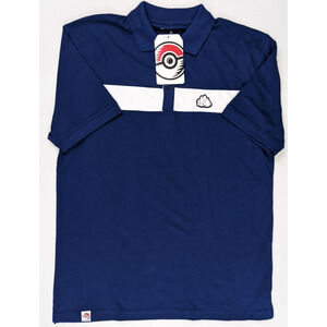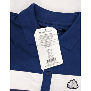 Pokemon Center Polo Size MEDIUM Mens SNOM Blue White Stripe Shirt