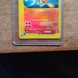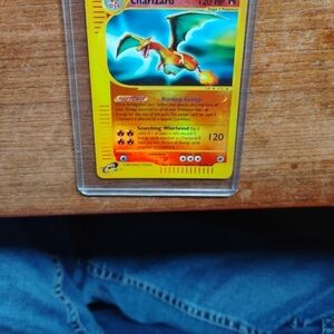 Experience the fiery allure of Charizard, a legendary reptile Pokémon known for its vibrant red and yellow hues. This iconic creature boasts a powerful presence with its dynamic flying pose and fierce draconic features. A must-have for any Pokémon enthusiast, this card captures the essence of Charizard's majestic and fiery nature.