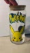 Clear glass tumbler featuring a Pokemon design. Comes with a straw and bamboo lid.