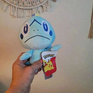 Own your very own Grookey and Sobble plushies with this set of 8-inch stuffed animals! Perfect for any Pokemon fan, these plushies feature vibrant colors and adorable designs that will make you want to collect them all. With new tags still attached, these plushies are in pristine condition and ready to be added to your collection.