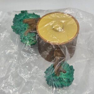 Box shows minimal wear from storage. Figurine sealed in plastic, unused. Measurements: Approx. 2 inches (tree stump height).