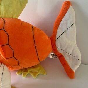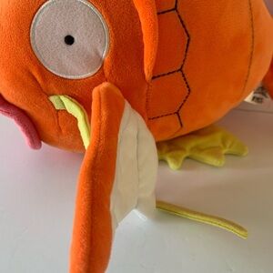 Pokemon Magikarp orange fish plush toy with yellow fins and white accents. Soft, cuddly, and collectible.