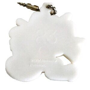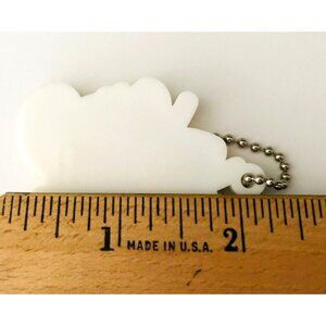 Made of hard white plastic with metal keychain. Haven't found another version like this. Good condition.
