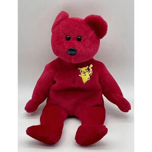 Pokemon Picabear Red With Pikachu Logo Beanie Baby 1999 Vintage 8.5” Retired