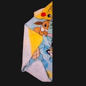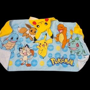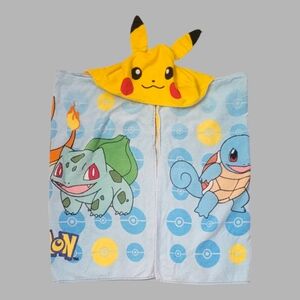 Keep them warm and dry with this adorable Pokemon Hooded Towel featuring Pikachu "Leap to Power" and friends. This bright colored terry cloth towel features Pikachu and a host of colorful characters like Bulbasaur, Charmander, Eevee, Meowth, and Squirtle. They'll want to use this towel all the time as it becomes a favorite and it's perfect for kids. This hooded towel can be used as a poncho bathrobe or for drying off after bath/shower, swim, beach, etc. It measures 47 1/2"×22 1/2" without the attached hood. No rips or stains. The first pic is not mine. Gently pre-loved from a smoke/pet free home. Laundered with Tide and ready to wear. ***Free surprise Artisan gift with purchase. I'm also selling this item on other platforms.