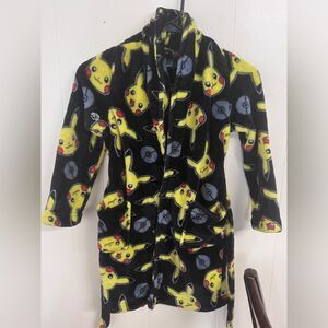 Pokemon Pikachu Kids Black Plush Tie Front Robe Sz 8