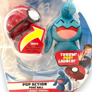 This Pokemon Pop Action Poke Ball Wynaut plush toy is a must-have for any Pokemon fan! The blue Poké Ball opens up to reveal a cute and cuddly Wynaut action figure. Made of high-quality plush material, this toy is perfect for display or play.