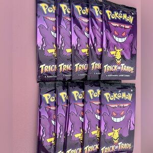 10X Pokémon Trick Or Trade Booster Packs - 2023 Limited Edition Halloween. Each pack contains 3 cards with one of them being a guaranteed Holo.