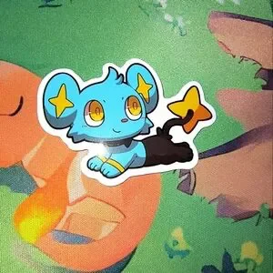Cute Shinx sticker from Pokemon. Features bright blue and yellow colors. Perfect for fans and collectors.