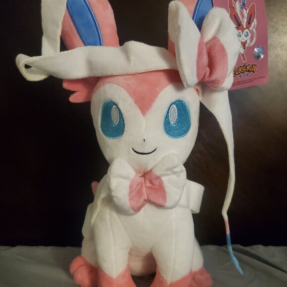 For sale is a 6 x 7 x 13 inch Sylveon plush. This soft and adorable plush will instantly make Sylveon your favorite Pokemon if he isn't already. Celebrate your love for Pokemon by getting your favorite one as a stuffed plush!