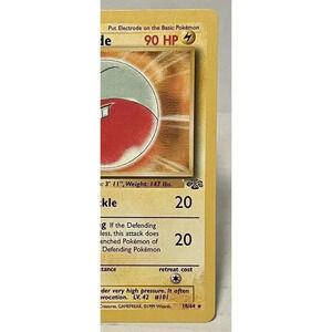 This Electrode card is part of the Jungle set and was illustrated by Mitsuhiro Arita. It is in English language and has the card type of Pokémon. The card also comes with the features of being unlimited and has the rarity of Rare. It was manufactured in the United States in 1999. Don't miss your chance to add this amazing card to your collection!