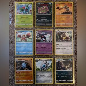 Set of Pokemon trading cards featuring various characters and abilities. Perfect for collectors and fans.
