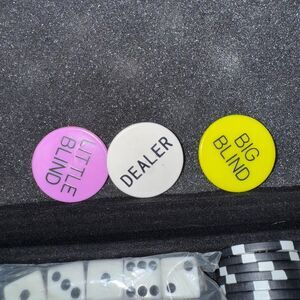 - no denomination on the chips, so you have the ability to designate whether its a 5 cent or 5 dollar chip