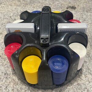 Poker Chips with a Chip Rack and a rotating rack for cards