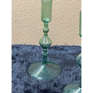 Poketo Glass Candlesticks Holder Green Set Of 2 With Elegant Design 8"